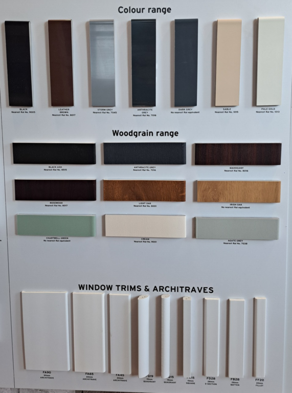 See our range of colours for soffits, fascias and shower panels below: